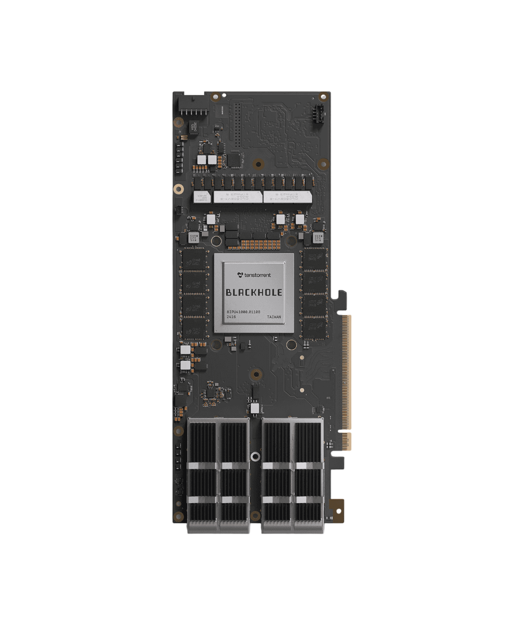 Run by industry legend Jim Keller, Tenstorrent is one of the many startups targeting the (relatively) low-power PCIe card AI accelerator space with the Wormhole, and now also the BlackHole cards. What makes Tenstorrent particularly unique is their custom IP for the RISC-V cores they use on their cards, designed specifically around their focus on keeping power draw low but also allowing for their "infinite" scaling strategy. The card comes in 3 forms, the P100a, p150a, and p150b, the first being a version without scale-up networking and only 28GB of GDDR6 with 120 RISC-V "Tensix" cores, and the last two being actively and passively cooled versions that come with scale-up ports on the PCB itself, as well as supporting up to 32GB of GDDR6 and 140 of the same cores.
