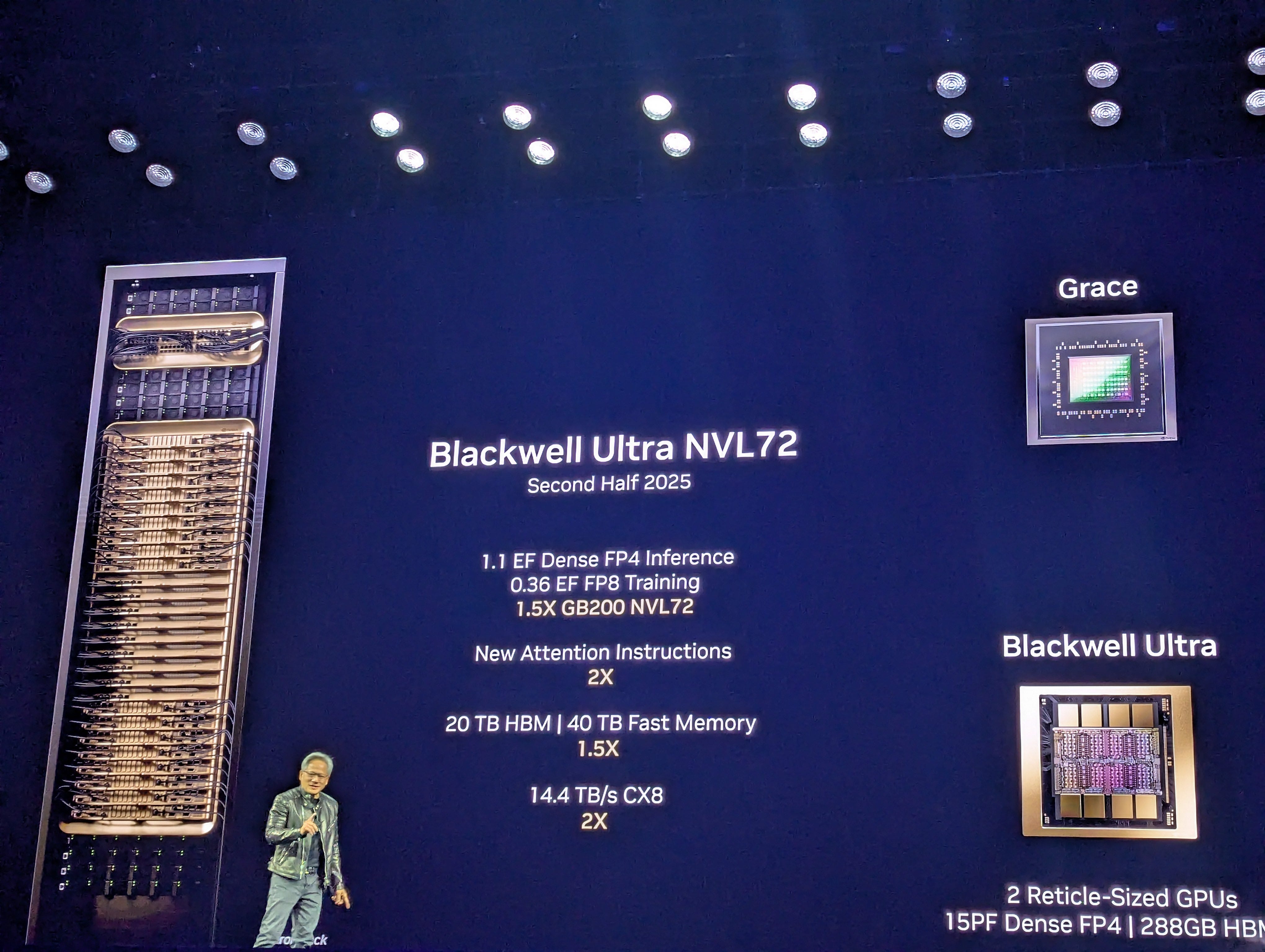 Nvidia revealed their GB300 (Blackwell Ultra) rack-scale SKU as the NVL72 during Jensen Huang’s GTC 2025 keynote presentation, but with an emphasis on how a single chip will be two GPUs rather than one from now on. The new method of counting GPUs may take some time to propagate, but the availability of this SKU is practically imminent.