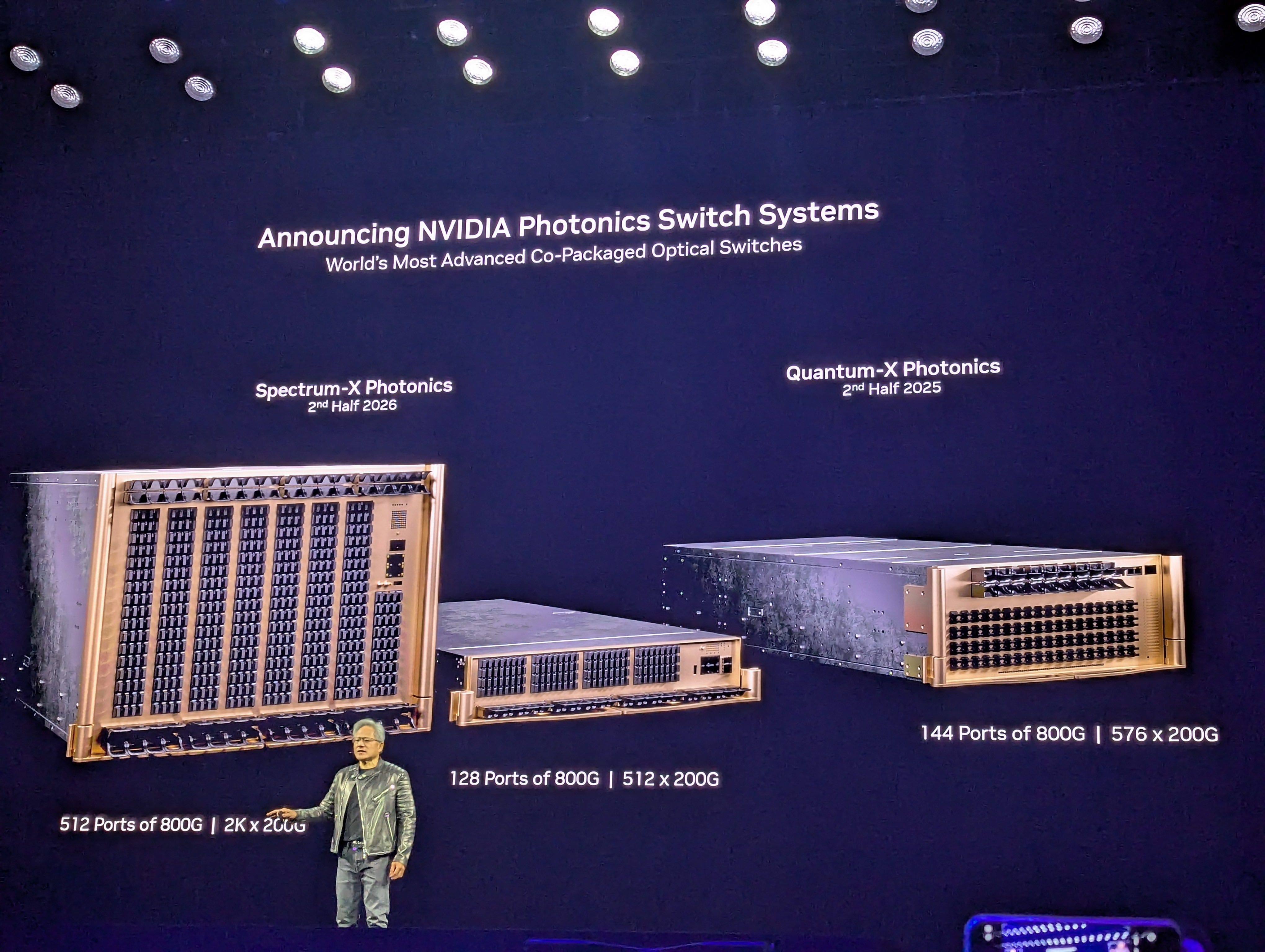 Anyone working in a datacentre will be familiar with the downtime caused by port-flapping, overheating, or just the eventual degradation of optical transceivers that servers and switches are increasingly requiring more and more of. At the GTC keynote presentation this year, Nvidia announced a collaboration with various industry partners on using co-packaged optics (CPO) to allow optical signals incoming from fibres to route to the ASIC package itself, rather than through a transceiver. Instead, CPO switches will use external laser sources to facilitate communication, which will come in similar form factors to SFP. Nvidia’s current roadmap includes a 144 x 800G QuantumX IB switch available in 2H25, and 128/512 x 800G SpectrumX Eth switches available 2H26.