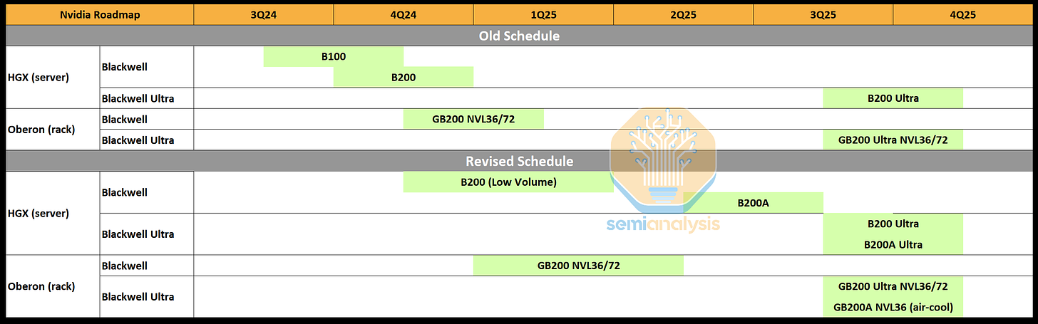 The revised schedule, likely to be updated again depending on early customer feedback in 1H2025. The x86 + Blackwell servers have not yet been announced but are likely on the way for 2H2025.