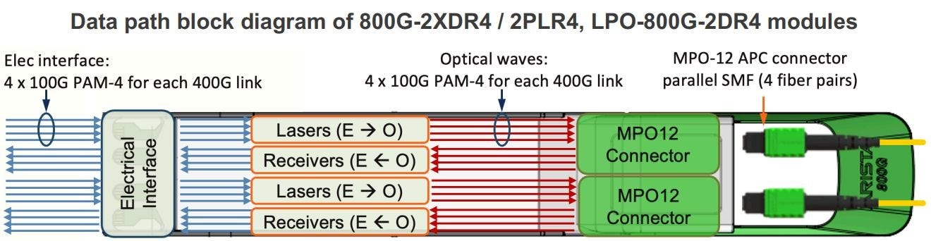 NADDOD‘s page on 800G tranceivers with a great diagram of this: https://www.naddod.com/products/101489.html