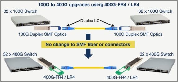 Similarly, FR and LR might work since both use O-band (1260nm-1360nm) and use LC duplex cables. But then you have to make sure the modulation is the same as: