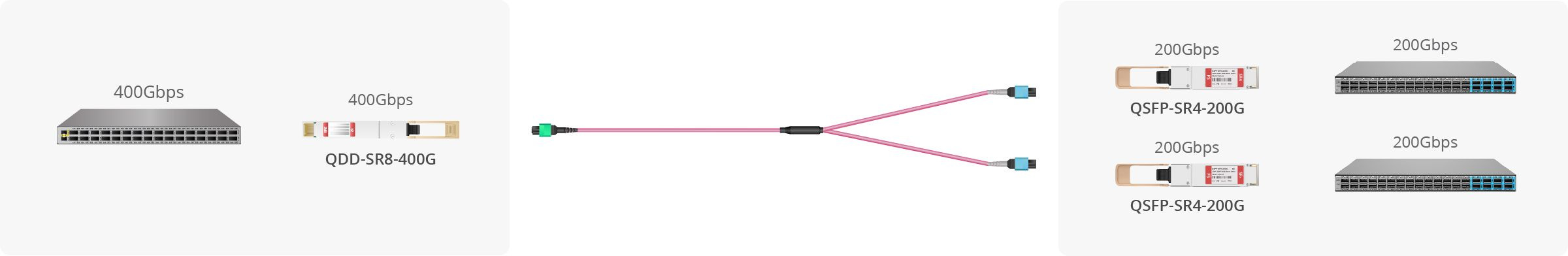 I thought that 200G QSFP transceivers would (since “Q” = Quad) use 4 lanes at 50G for the optical interface. This means that they are incompatible with 800G OSFP or 400G QSFP transceivers that run at 100G per lane.
